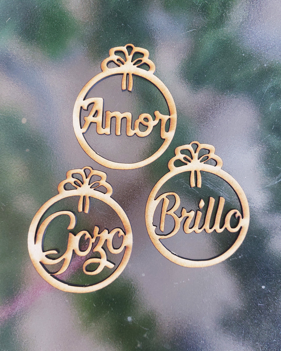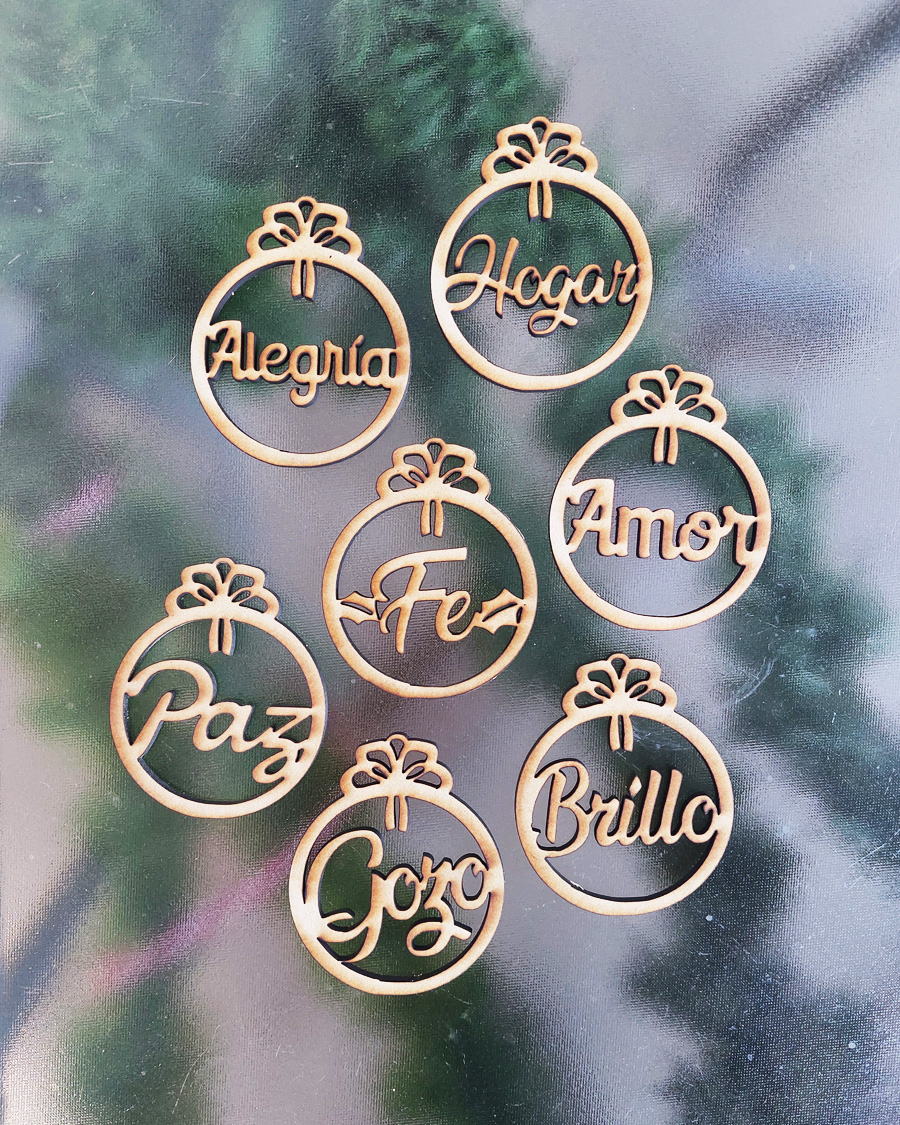 Esta Navidad tu árbol se verá muy elegante y ecológico con estos lindos adornos con adjetivos de lo que significa esta temporada. Reserva los tuyos pronto. Precio por unidad.