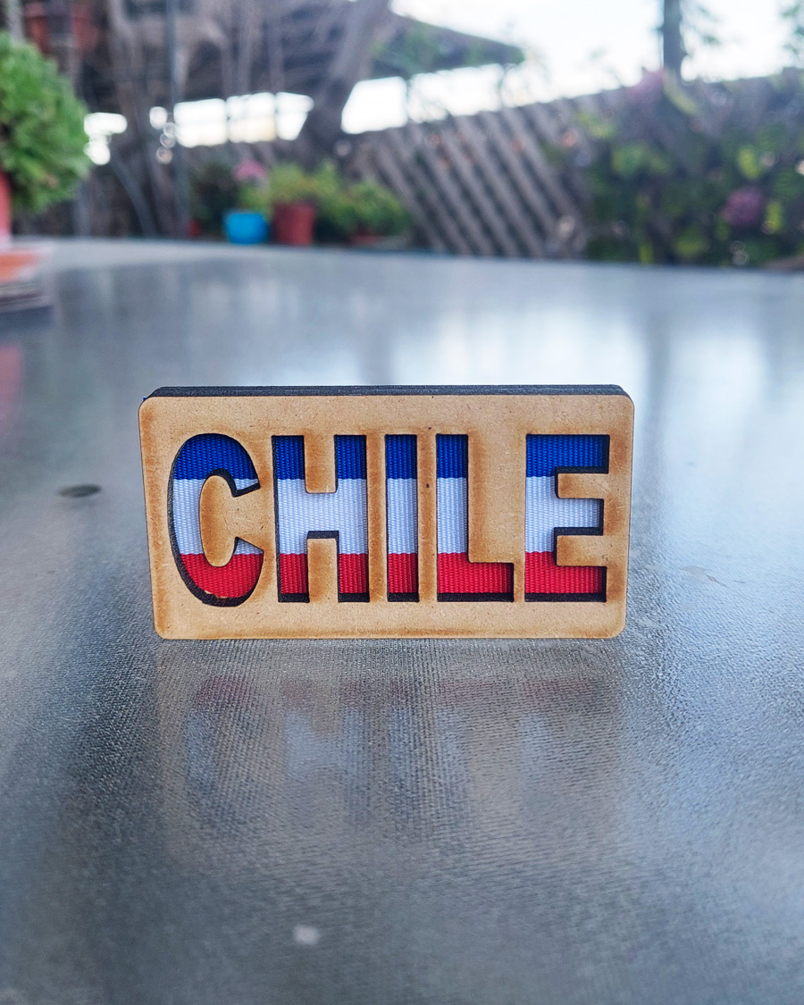 Los colores de la bandera son el fondo del nombre de este maravilloso país ubicado entre mar y cordillera: Chile. Ahora está disponible para tenerlo presente y, por qué no, para ofrecerlo como un lindo presente a un amigo o familiar.